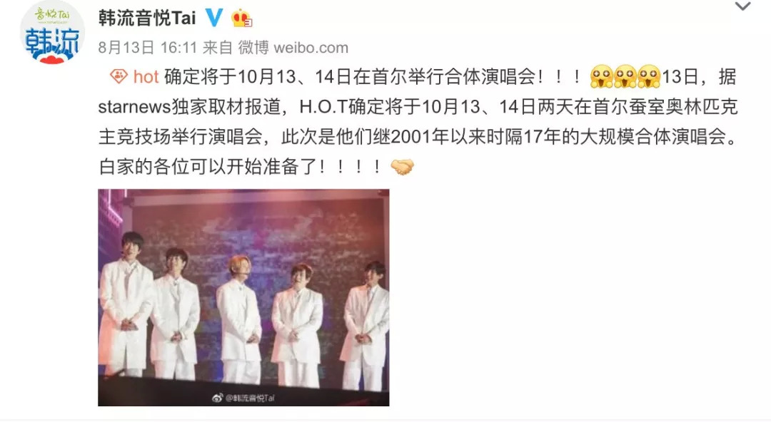 人来人往,潮起潮落。在听着安室奈美惠回忆青春的时候,韩流第一代偶像组合H.O.T.在解散17年后,决定于今年10月合体再开演唱会。