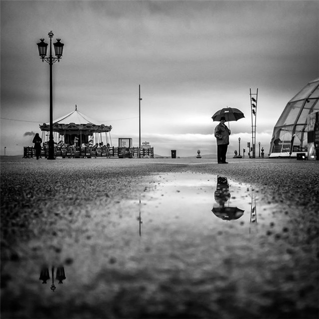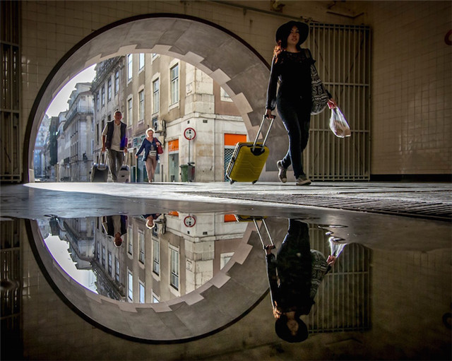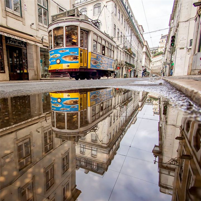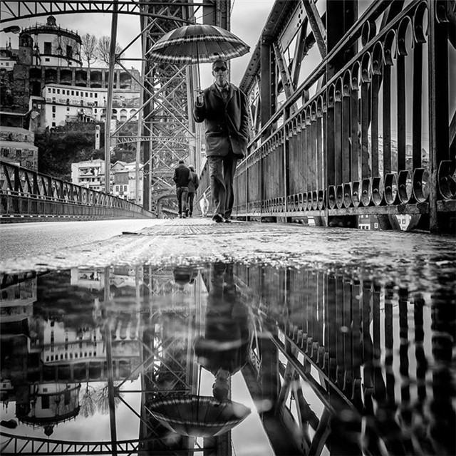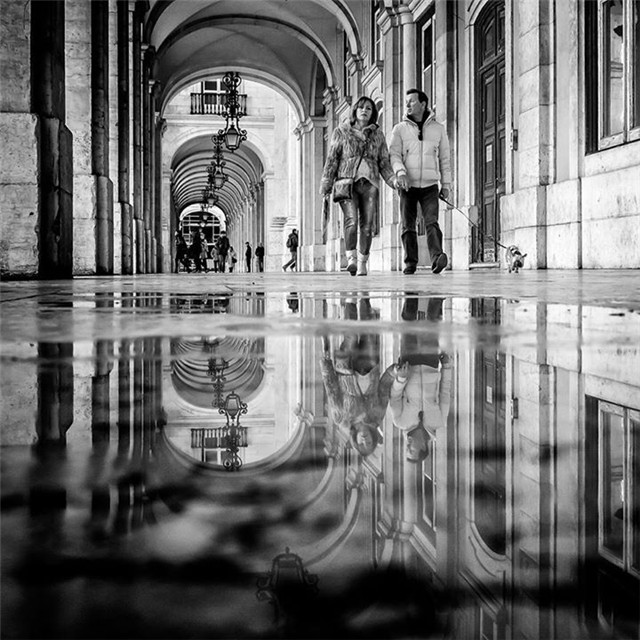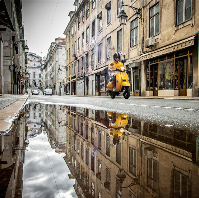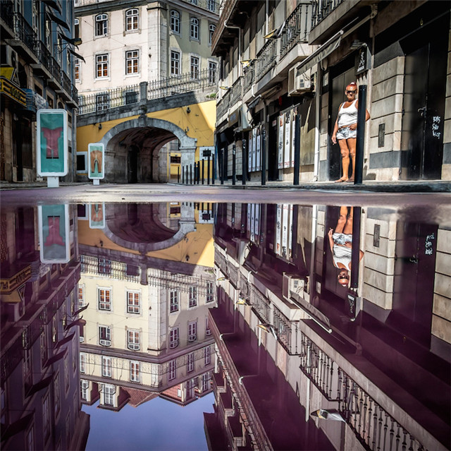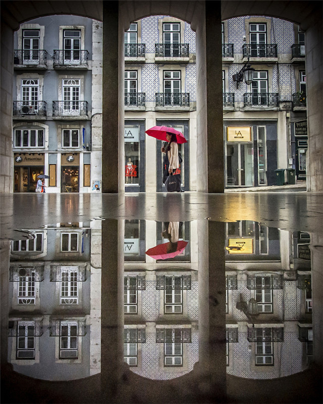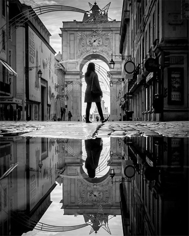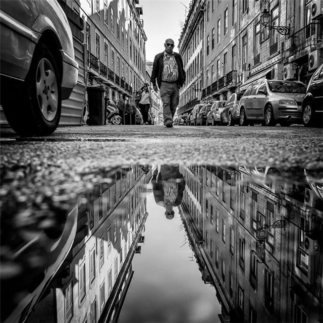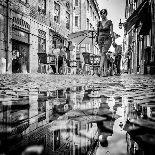 葡萄牙摄影师Daniel Antunes喜欢街头拍摄。但对他来说,拍摄的最好天气并不是阳光明媚、光线充足的晴天,而是雨过天晴的时候。因为他的作品总离不开积水与倒影。