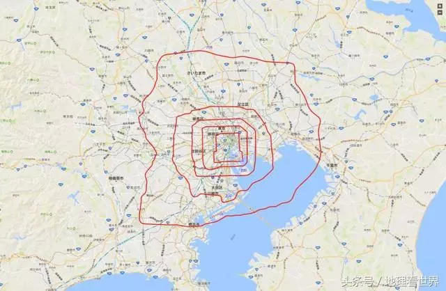 把目光放在国外,同比例的北京放在东京都市圈。你会发现东京和北京比起来还是小了不少,六环就到横滨了。这也牵扯到另一个话题,为什么东京圈的建成区面积小于北京,人口4200万,几乎是北京的两倍,却没有那么多的大城市病呢。