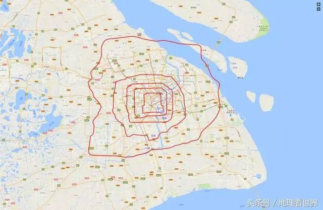 不妨以北京的六环图同比例对照上海,会发现,北京的六环不如上海的外环大,而北京的建成区面积主要集中在五环内,五环和六环之间其实还有很多未开发之地,但上海外环内几乎都是开发地,应该算入建成区面积。