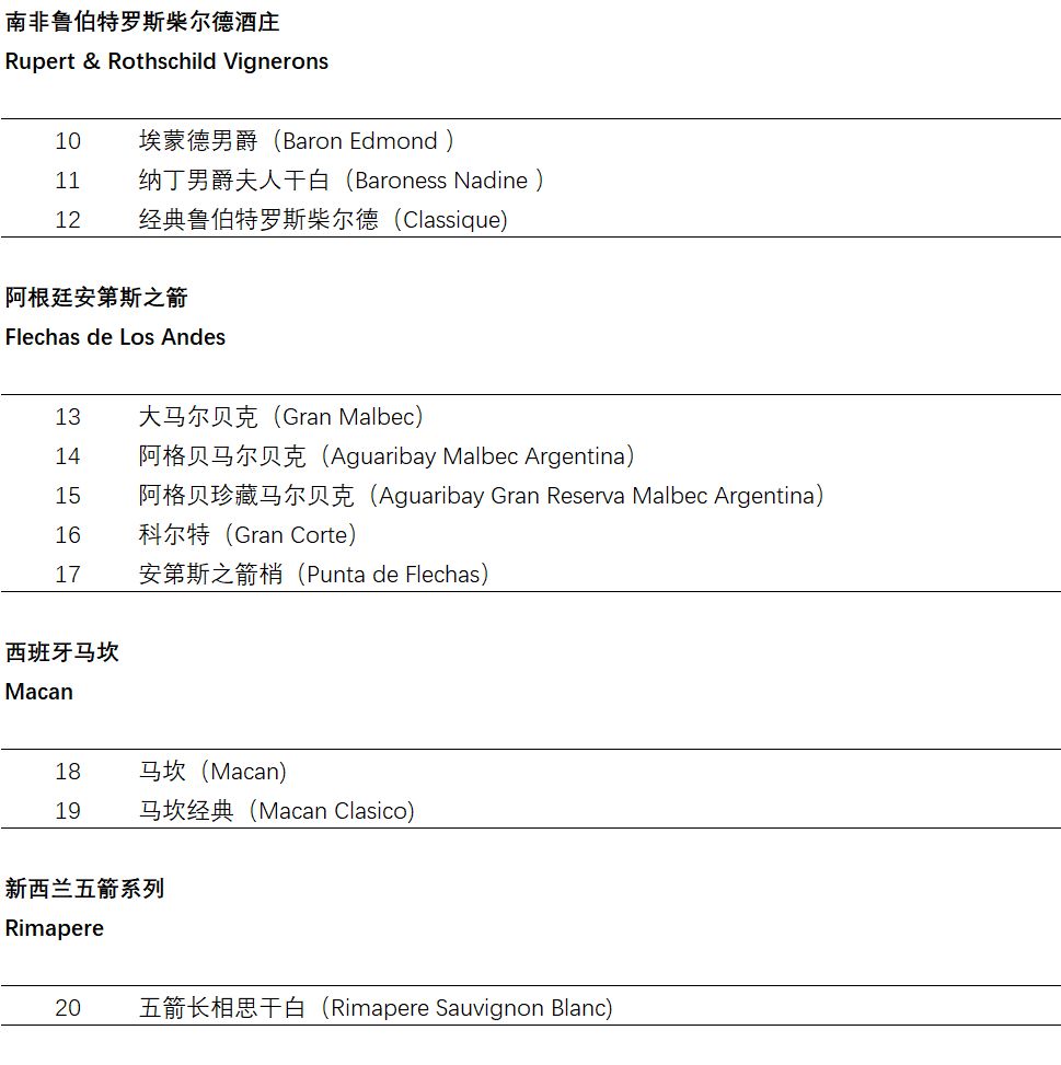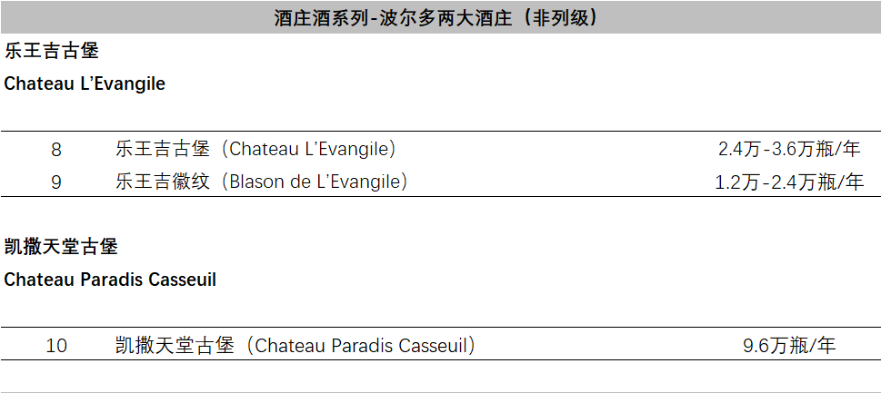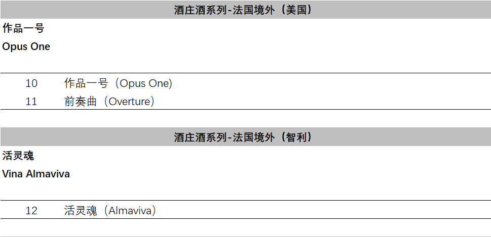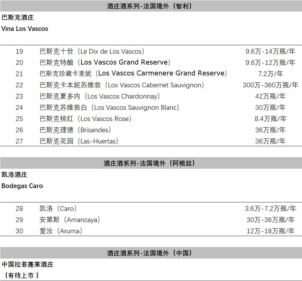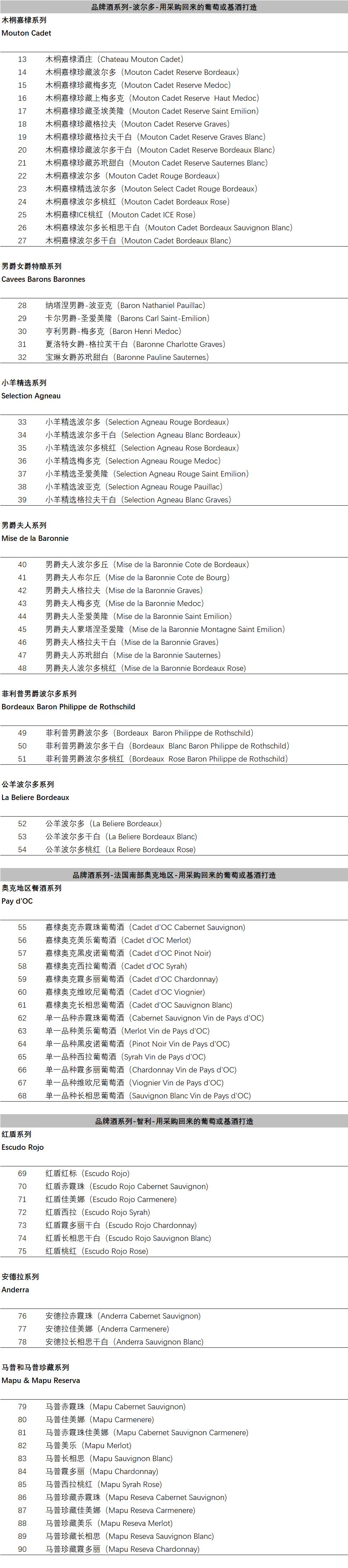 4、10大品牌酒:(其中,前面7大品牌用法国境内采购的葡萄或基酒打造,后3大品牌用智利境内采购的葡萄或基酒打造)