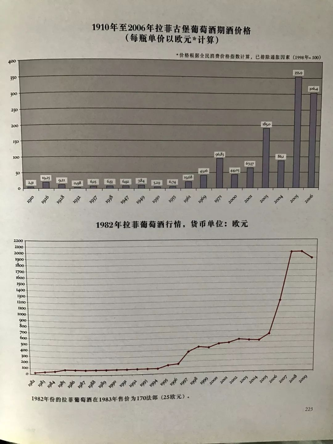 在这里附上从1847至2007年拉菲的年份情况图、从1910至2006年拉菲葡萄酒的期酒走势图、及从1983至2009年著名的1982年拉菲葡萄酒的行情图,喜欢拉菲的朋友可细究一下。值得注意的是,1982年拉菲是被国内各大电影、电视剧里的主人公“点”得最多的酒,估计现在市场上已所剩无几。