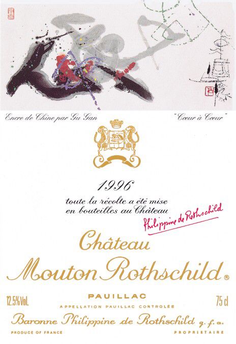 木桐堡也是开创波尔多酒庄在酒庄装瓶再销售以及每年邀请一位知名艺术家创造专属酒标的先驱。木桐堡内有一葡萄酒艺术博物馆,是每位来访者必到的,这里收集了各个历史时期与葡萄酒、葡萄种植相关的珍贵展品,当然还有每年世界各地知名艺术家为其绘制的从1924年至今的精美酒标展出。以下是重要的1973年酒标,出自毕加索之手;还有2008年的“公羊”和1996年的“心”字酒标,分别出自中国的徐累和古干。
