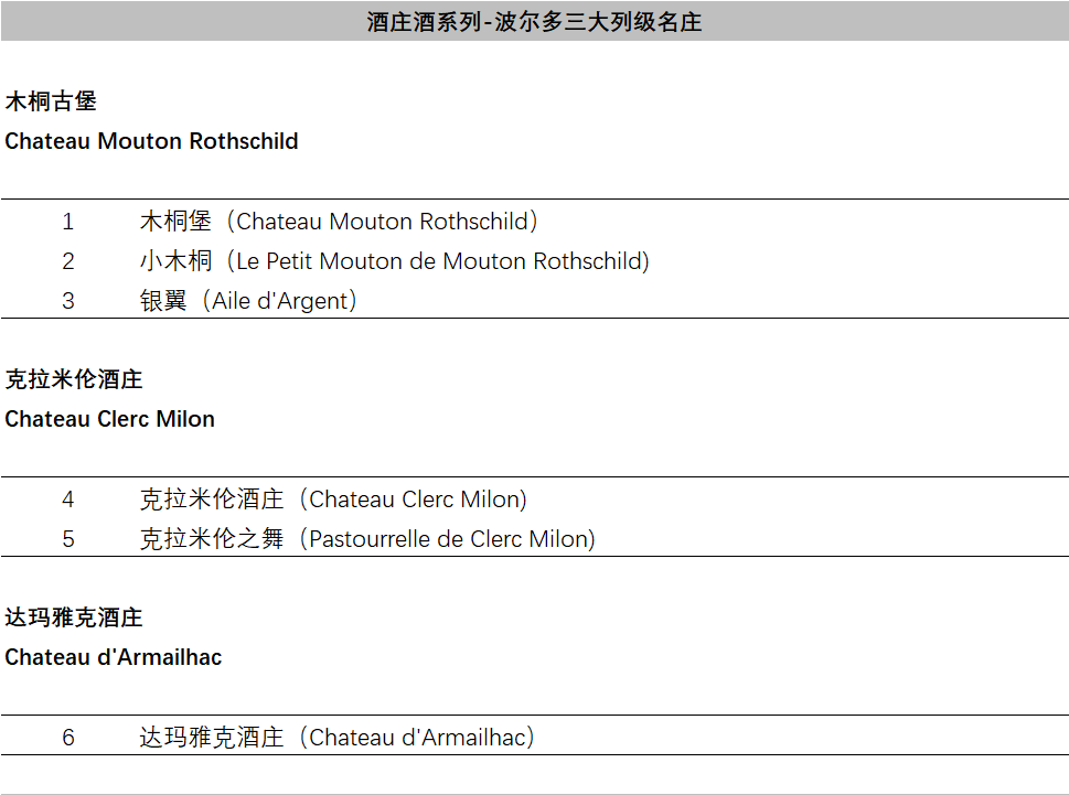 木桐堡只出产三款葡萄酒,其中与古堡齐名的是正牌酒,银翼是干白酒。