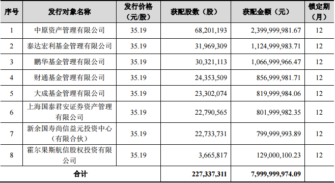 顺丰控股一年前定增发行的股份也计划于本周解禁。一年前顺丰控股以35.19元/股的价格向8家机构发行了2.27亿股,募集资金共80亿元。这些股份限售期为12个月。不过公司仍未披露解禁公告,具体解禁日期以公告为准。