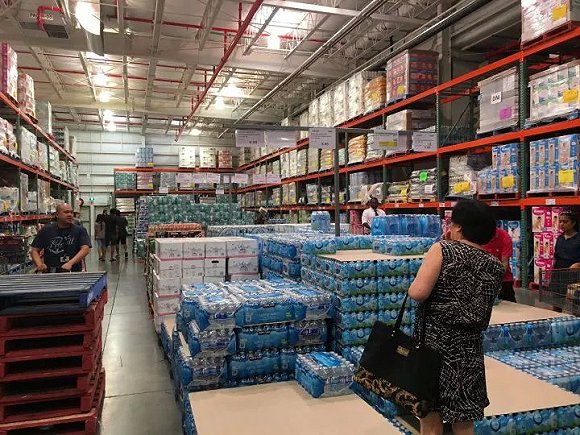 Costco是仓储式超市,店内布置很简单,直接把仓库当卖场。卖场里面的商品陈列也很简单粗暴,货柜非常高。