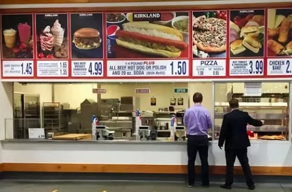 热狗+汽水的组合作为Costco的招牌之一,已经30多年没提高过价格了,即使物价一直上涨,却一直保持1.5美元。这个套餐,每年能卖出一亿套。
