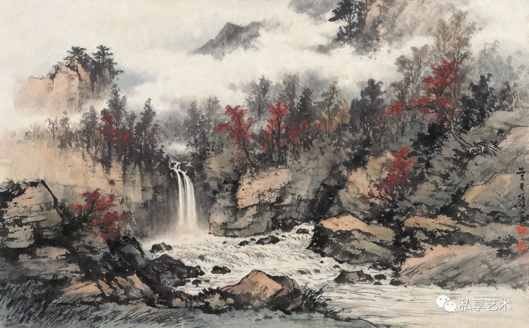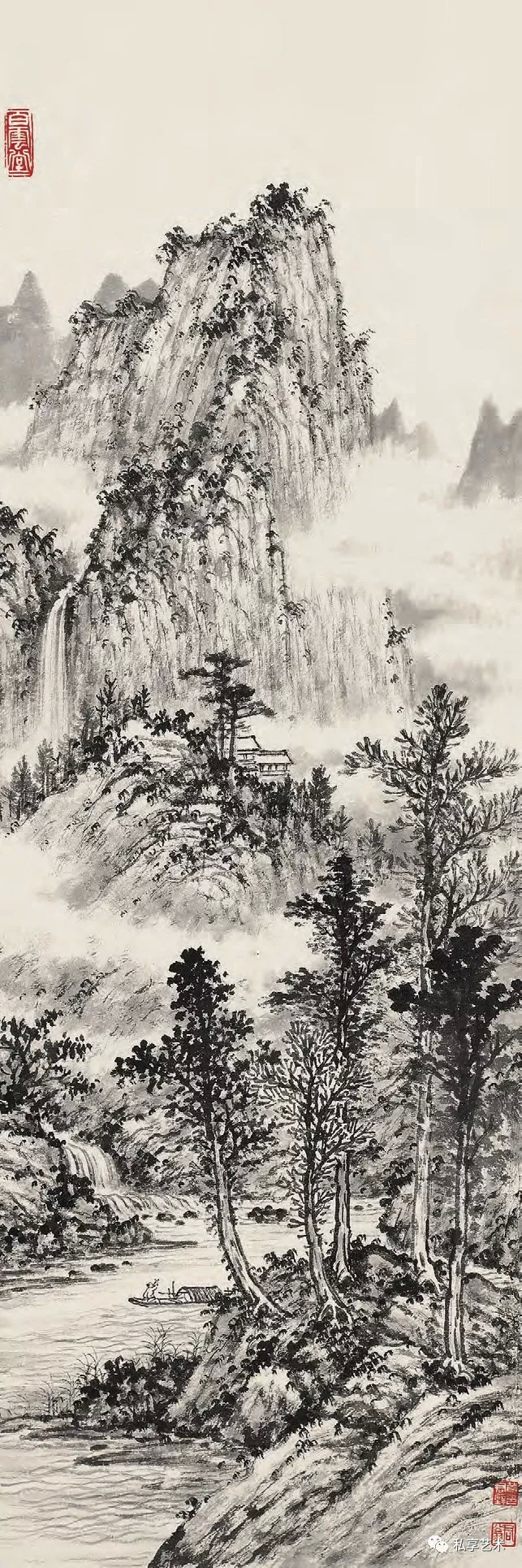 平生作画,偏爱山水,草木幽林,嫌其寂静,行云流瀑,始觉奔驰,耽其景而状其形,主其动而实其静。