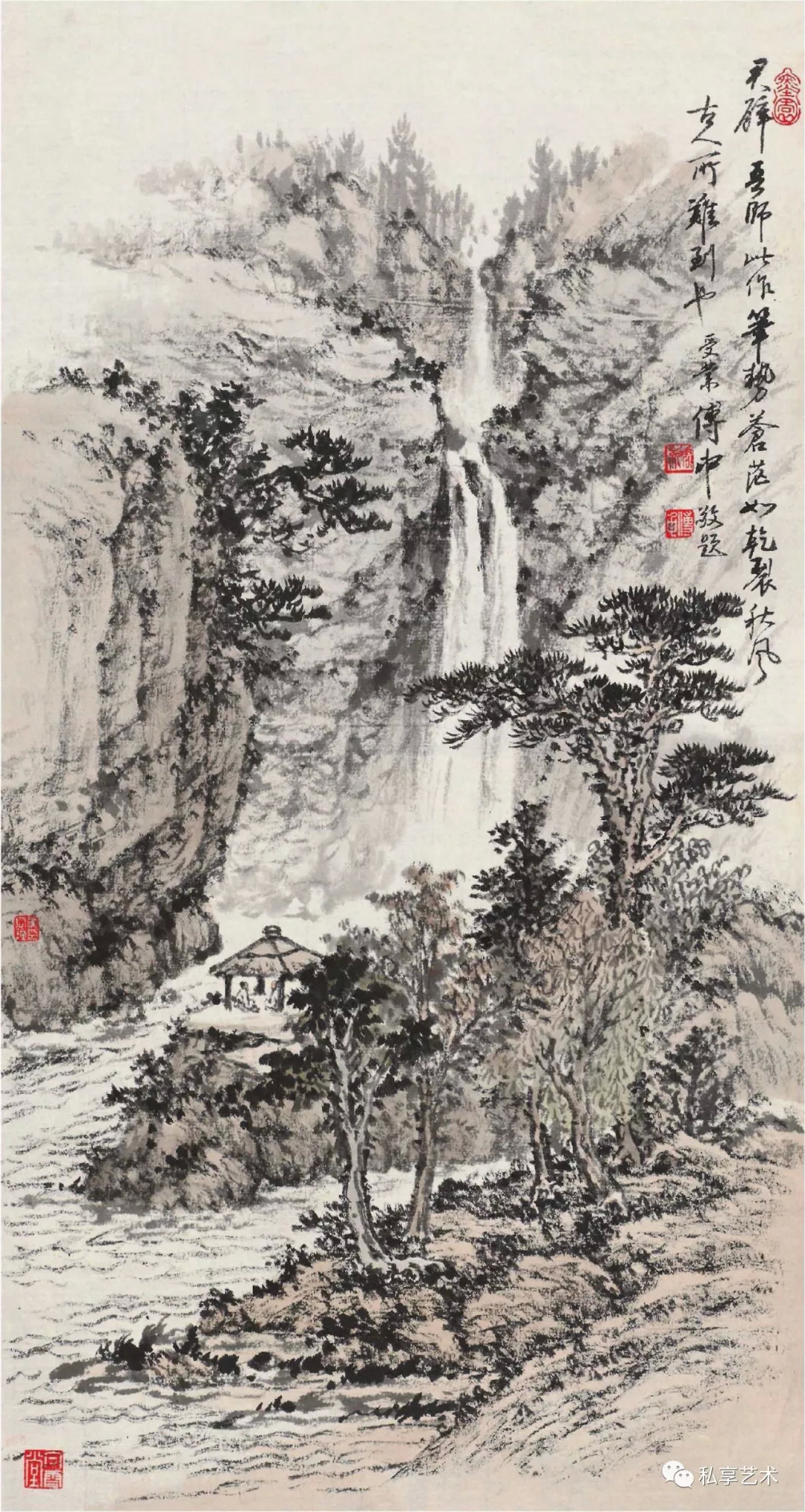 黄君璧 观泉图 纸本水墨 57×30cm 20世纪60年代