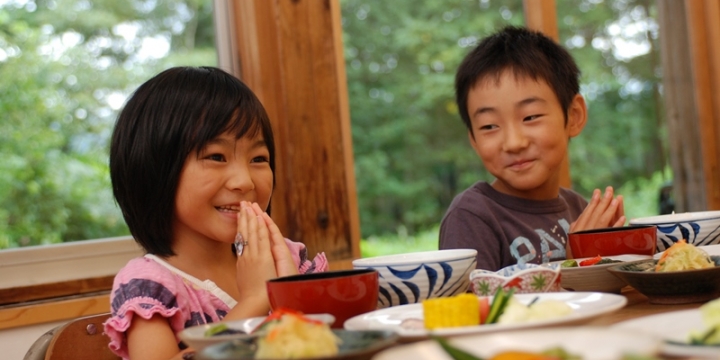 餐厅原本也是教室,两间打通,显得十分宽敞。这里每天在早饭和晚饭时间热闹非凡,附近村民受聘于此,负责料理他们拿手的松之山家常菜。“越光米”就出产自周遭梯田,白味增和蘑菇、渍物小菜都是手工制作采摘。