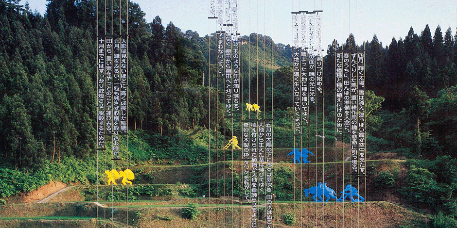 “越后妻有”是日本战国时代的古地名“越后国”与“妻有庄”两者拼接而成,字面意思为“走到极地尽头之后”,有点绝处逢生的意思。这里地处三国山脉北麓,又靠近日本海,冬季降雪量巨大,川端康成笔下著名的“雪国”,正是指这一带。这儿的雪季长达半年之久,道路两旁动辄堆着三米高的积雪。在艺术节之前,温泉和滑雪场是人们到此一游的主要目的地。