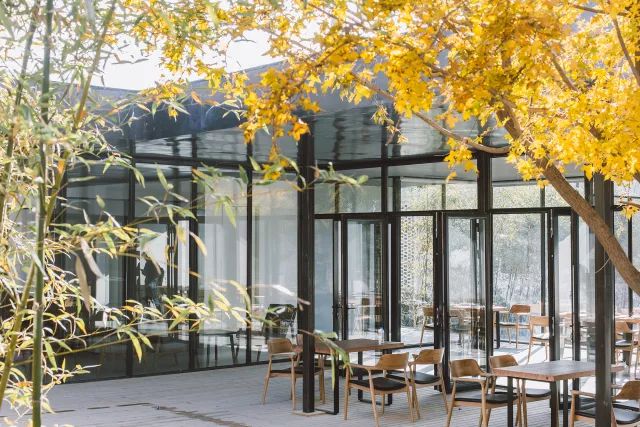 入门就是大堂与餐厅,内部装饰简洁且偏向暖色,与其他区域统一的大面开窗自然也是少不了的。