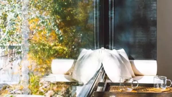 窗前的飘窗上,放了个小茶几,可以在这里工作休息。