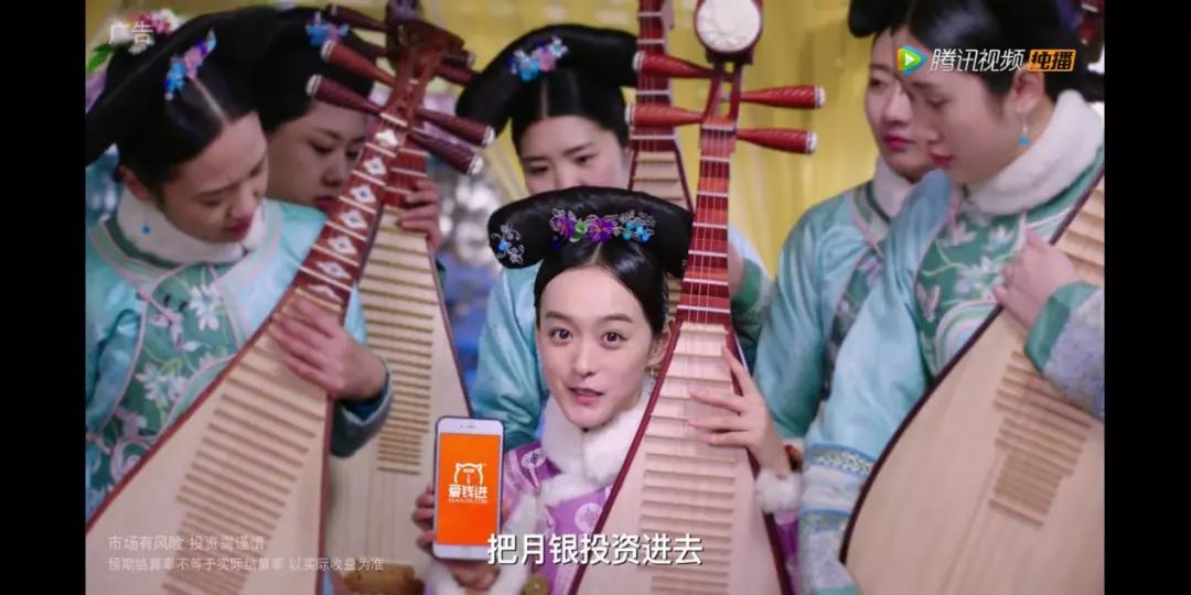 其中互联网金融品牌无疑是中插广告最大的金主,比如悟空理财、爱钱进、现金借贷扎堆进入《那年花开月正圆》,《军师联盟》里是人人贷和悟空理财;《楚乔传》一口气集中了爱钱进、向上金服、三文钱、几何股票APP等等。这是因为2015年新《广告法》禁止了互金平台的线下广告投放,广告内容也有限制,于是影视剧中插广告成为了互金品牌最集中的广告渠道。
