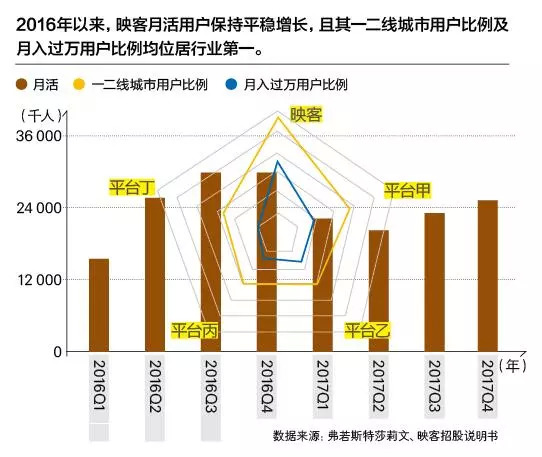 再对比另一家在港股上市的直播平台天鸽互动,目前月活用户与映客相差无几,但付费用户和金额则远低于映客。截至2017年底,天鸽互动月活跃用户数约2 400万,季度付费用户123.7万人,季度用户平均收益为172元。2017年营收10.05亿元,经调整纯利(净利润)为4.56亿元。而映客2017年月活跃用户数约为2 269万,季度付费用户约310万(按照招股说明书2017年月平均付费用户103万计算),季度用户平均收益约为1 218元(按照招股说明书2017年用户月平均付费406元计算)。映客2017年全年营收39.4亿元,净利润达到7.92亿元。