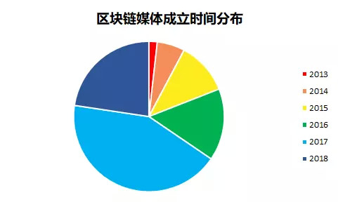 2017 年底自「区块链」风口爆发后,多家区块链媒体诞生。IT 桔子数据显示,从 2013 年到 2018 年 6 月,国内共成立 155 家有进行工商注册的区块链媒体或社区公司。从成立年份分布来看,这波区块链媒体主要集中在 2017 年以及 2018 年创办,占比近五年来整体超过 67%。