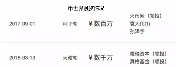 币世界:成立于 2017 年 8 月,目前天使轮,总融资额约 3300 万人民币
