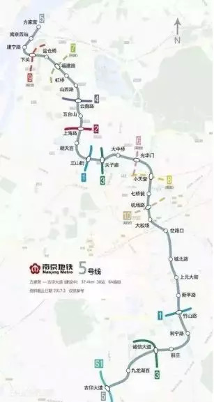 该线贯穿江宁区、鼓楼区、秦淮区,与江南所有已运营及拟建的城市轨道交通线路换乘,换乘站多达14座,约占5号线车站总数的一半,是目前换乘站最多的“换乘王”。