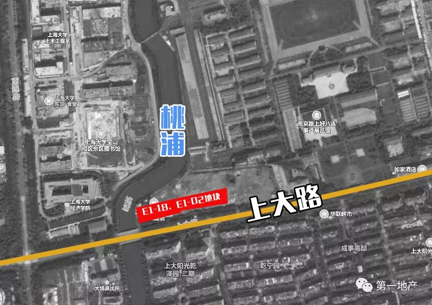 四至范围:东至E1-16地块,南至上大路,西至桃浦,北至E1-16地块