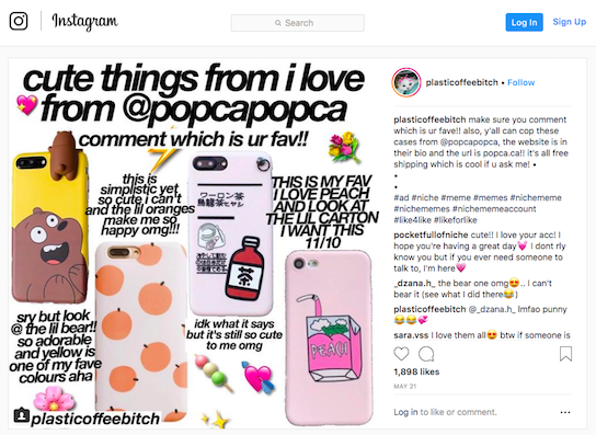 主营时尚太阳镜,手机壳和背包的 Icewise 的老板 Matthew Weisberger 认为,与Instagram上的青少年合作,“从广告的角度来看,就像挖到了黄金一样。”最近,他转变了营销策略,减少与Instagram网红的合作,转而给粉丝更少的青少年机会:“以前我合作的人大多都是' 从 Icewise 购买太阳镜 '之类的文案。而这些年轻人只收20美元,还制造出专属于你产品的模因, 他们做得更好。