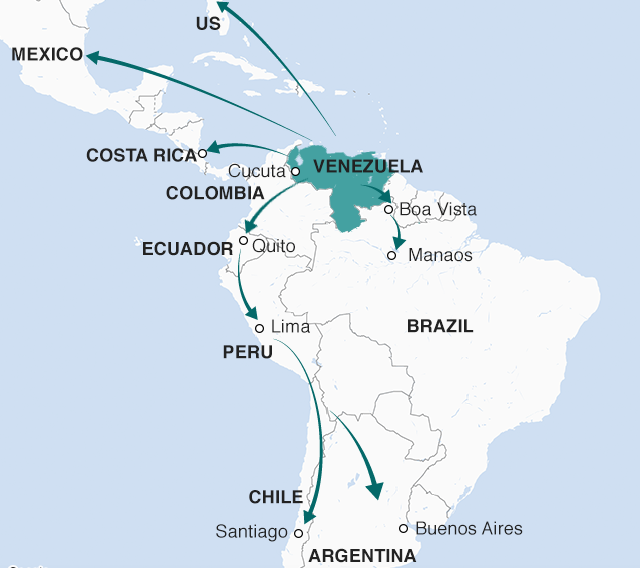 由于经济崩溃、政治动荡,委内瑞拉人因无法获得基本食物和日常生活用品,正大批逃离本国。难民的大量涌入,引发了周边国家的担忧。哥伦比亚、厄瓜多尔和秘鲁的官员下周将在哥伦比亚首都波哥大会面,寻求解决问题的方法。