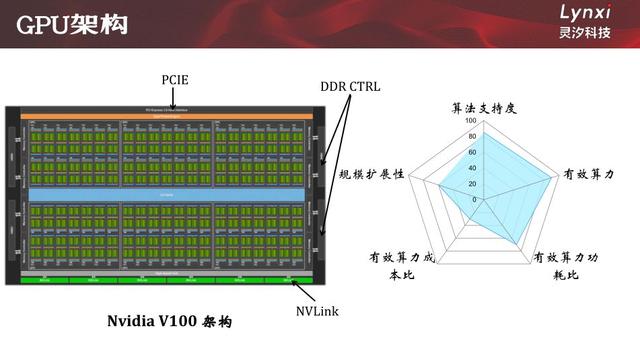 由于GPU是很贵的,V100采用12nm工艺,面积达到了815平方毫米,成本相当高,因此它的有效算力成本比得分为30分。