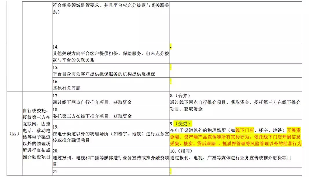 在电子渠道以外的物理场所(如线下门店、楼宇、地铁)开展资金端、资产端产品宣传等所有宣传行为,依托线下门店开展信息采集、核实、贷后跟踪、抵质押管理等风险管理以外的经营行为。