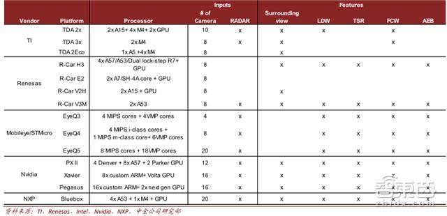 目前各厂商下一代的自动驾驶平台最早计划于 2019 年量产,现今上市平台中,芯片大多只支持 L2/3 级。