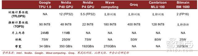 各芯片厂商基于不同方案,都推出了针对于云端训练的 AI 芯片。