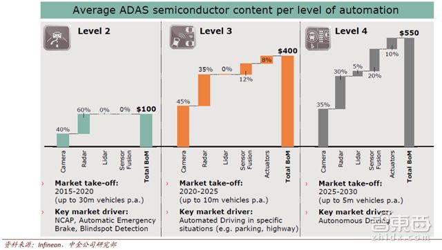 ▲英飞凌对各自动驾驶等级中半导体价值的预测