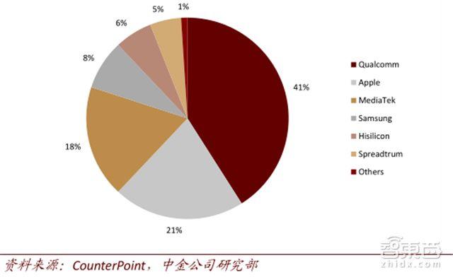 手机芯片市场目前包括 (1) 苹果,三星,华为这类采用芯片+整机垂直商业模式的厂商,以及 (2) 高通,联发科,展锐等独立芯片供应商和 (3) ARM,Synopsys、Cadence 等向芯片企业提供独立 IP 授权的供应商。