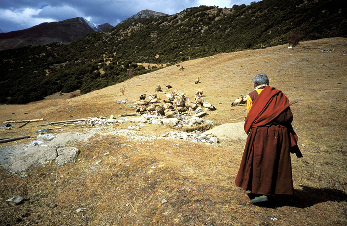 1. 人死了以后,邀请自然界的鸟类来啄食尸体的“天葬”,是西藏藏族人民的古老风俗。在藏族人的眼里,鹰是神鸟,是空行母的化身,尸体被鹰鹫吃了以后,死者灵魂可以升往天界。