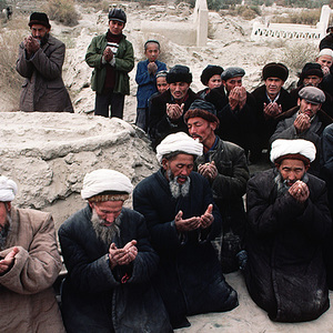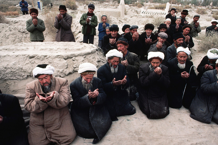 8. 在墓地祈祷的维吾尔族穆斯林。