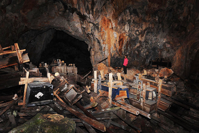 7. 岩洞葬是我国南方少数民族的古老葬俗,即人死以后,将棺柩放入崖洞中的一种葬法,葬地大多选在山腰或山脚的天然洞穴中,而洞葬地点大多就在村寨的附近。因其葬地的选择与山崖有关,所以也被称之为“崖葬”、“崖洞葬”等。