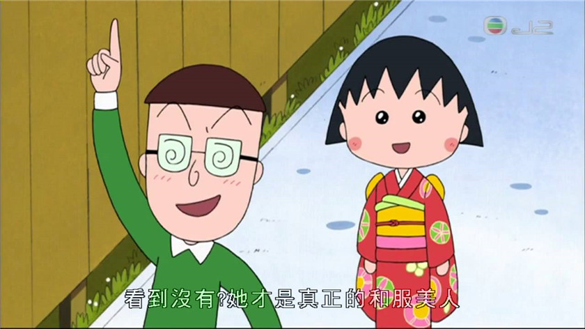 到了每年4月的新生入学季,日本的小学生们也会梳好头发,穿着好看的长振袖和服参加入学式,小丸子当然也有自己心爱的和服。不过在非正式场合,我们看到的小丸子大多都还是穿着最简单款的浴衣出现在画面里。