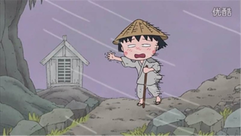 幻想自己沦落为乞丐的小丸子。