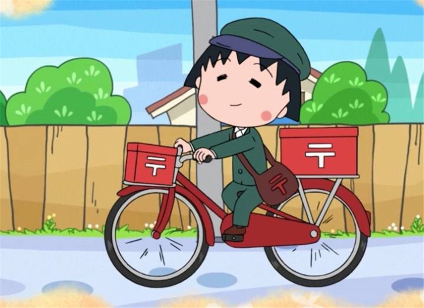 穿着邮差服的小丸子。