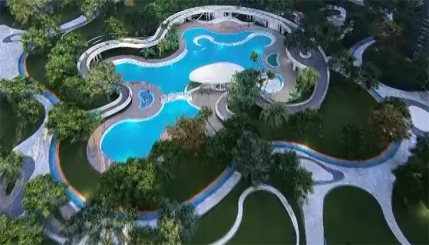 普通的社区常常是高层加别墅的形式,会牺牲住户的共享空间。松湖碧桂园·天鉆打破常规,采用纯高层围合式大中庭布局并规划了6万平园林,为住户提供超大的共享空间。社区内还有下沉式水中会客厅、1700平多维度泳池、宠物乐园、户外原聚场等人性化互动场所。