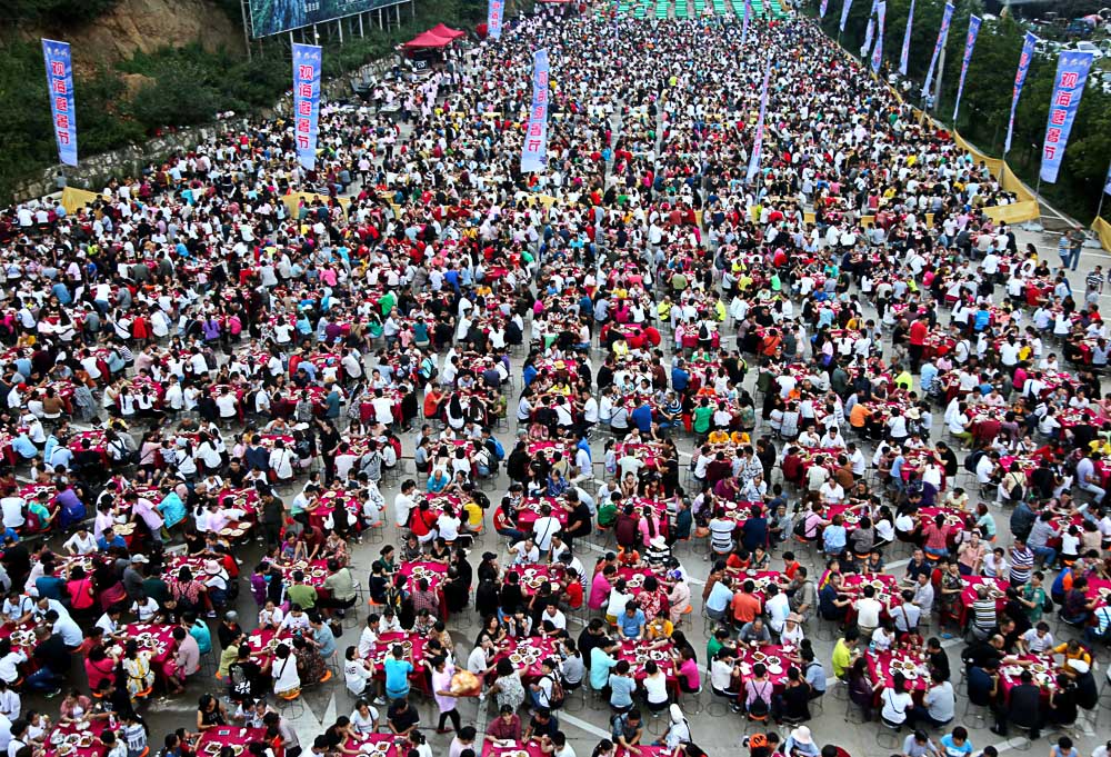2018年8月25日,位于河南洛阳栾川县七里坪村的老君山景区推出10元钱流水席,游客每人付10元钱即可入席。
