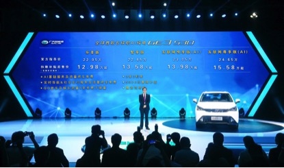 8月27日,广汽新能源GE3 530正式上市。新车分为乐享版、智享版、互联网悦享版(带AI系统)、互联网尊享版(带AI系统)共计4款车型,补贴后售价区间为12.98万元-15.58万元。