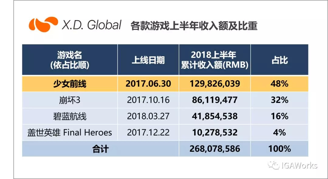 在这样的收入额中, 分别在去年上半年,下半年上线的《少女前线》及《崩坏3》两款手游今年上半年仍然持续地创造出稳定收入额, 各自占了48%, 32 %的比重; 另外, 被称为是继《少女前线》及《崩坏3》后, 心动网路2018年日系少女风格的最新力作的《碧蓝航线》以约4,185万人民币的收入额占了16%。