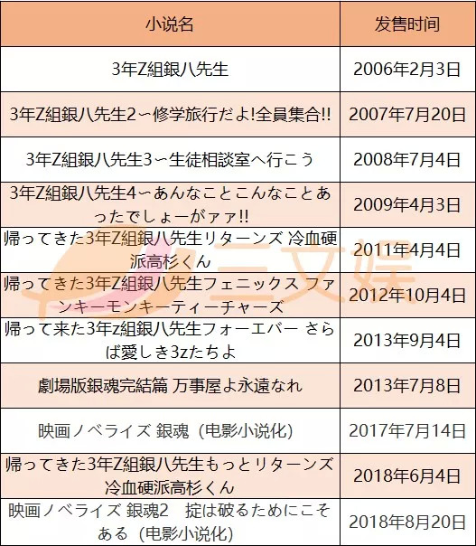 《银魂》主线故事之外,原著作者空知英秋联手小说家大崎知仁共同创作了《银魂》的官方轻小说。而《银魂》小说版的出现甚至早于动画的播出。