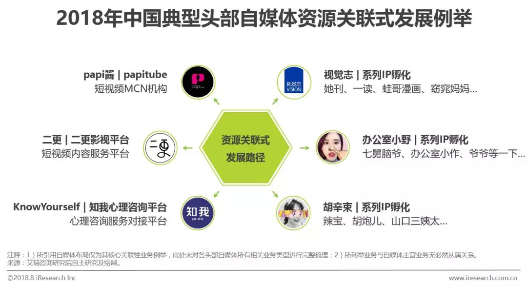 在本职的内容运营外,部分头部自媒体还分别进行了纵向和横向的资源关联式发展:1)受资源所限,自媒体多以某一垂直角度切入市场,无论切人群还是切内容,垂直领域的头部自媒体对于相应受众的影响力将较为显著,且关联垂直服务的能力也显著较强。因此,深入挖掘垂直领域上下游服务场景,搭建资源对接、全链路服务等类型的服务平台成为其优势之选。2)此外,孵化系列IP、吸纳优质自媒体资源对于部分头部自媒体来说也是进行内容扩张、降低内容风险的重要方式。不同账号存在调性差异,覆盖用户群体也有所不同,IP矩阵的组建有利于其品牌实力的增强。
