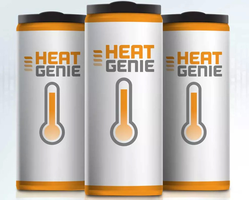 “HeatGenie的自热罐采用了铝和二氧化硅的固体专利技术,自热装置仅占据罐体的十分之一,可在不到两分钟的时间内加热。产品重量很轻(仅42克),加热速度快,罐体也是可回收的。”