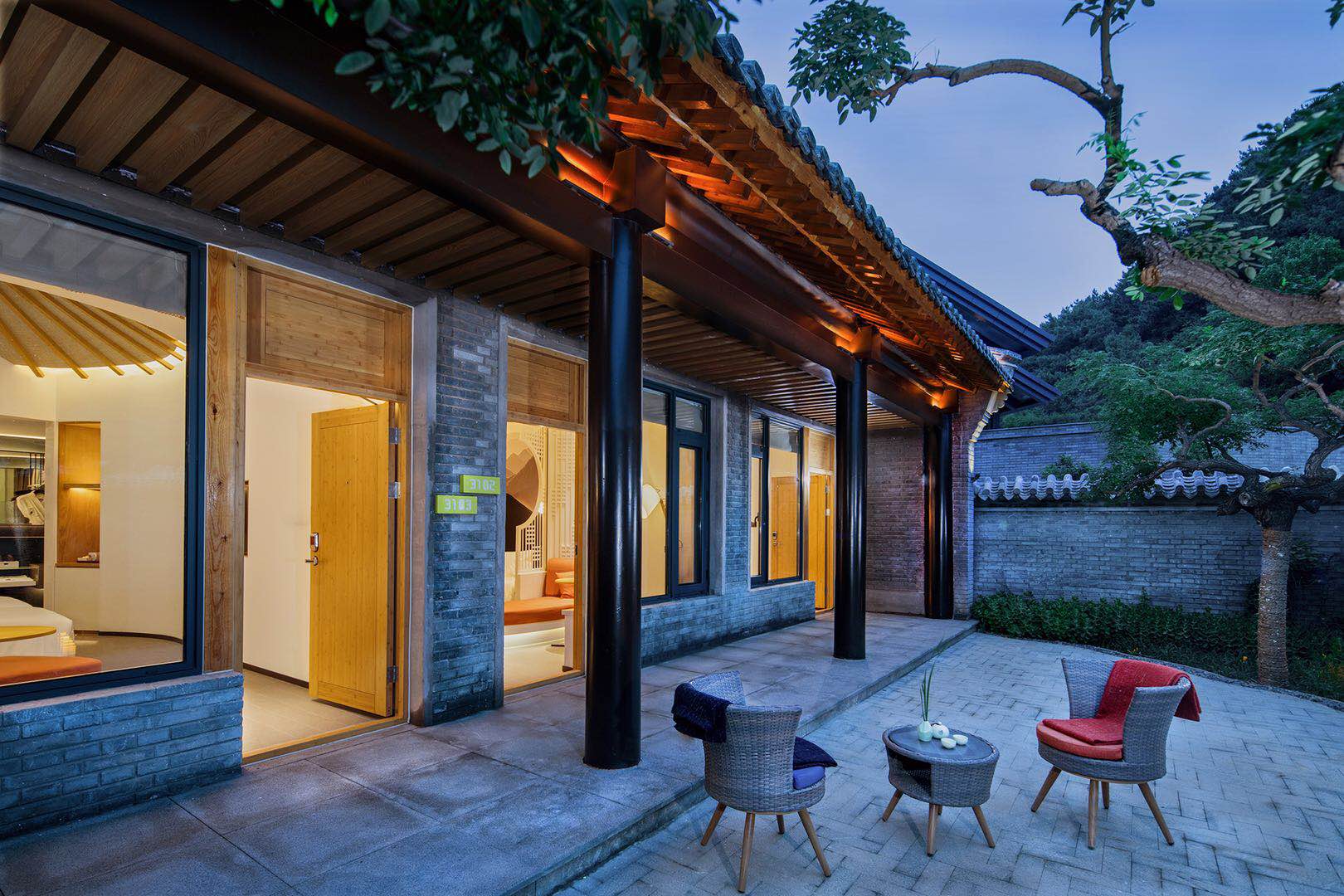 酒店有200间“眠茧”客房及套房,房间以崇山峻岭为设计灵感,融合了古典文化元素。不同客房根据朝向,或享有怡人庭院景观,或尽览长城与群山。