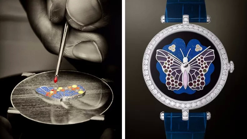 在一些情况下要做好几层,每层都要加热。这是一个很费事的过程,出现任何异常情况意都味着要重新来。由于对技术的要求以及需要花费和浪费的时间,这类型的表都很贵。如果要添加颜色,难度还要加大。