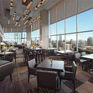 行政酒廊作为一个休闲之地,为了迎合不同人群的需求,一般都有明显的区域划分,例如会有就餐区,会客区。
