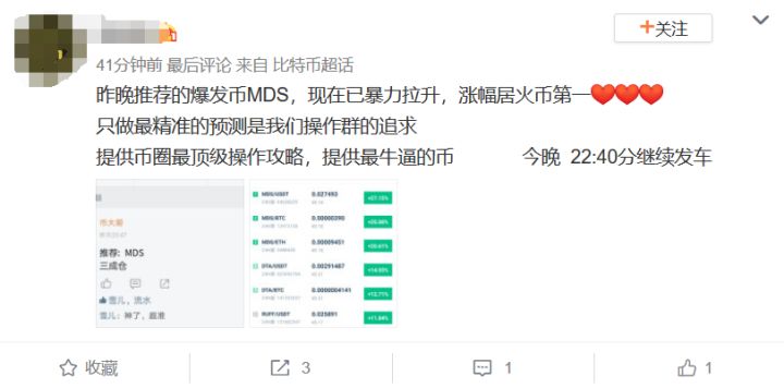 上面知识星球里的大 V 无名无姓,大家只知道这个人是个会炒币的人,对于陌生人来讲,可信度并不高,但是如果你已经是一个很有威望、很有钱的名人,那你向自己的粉丝群体喊单时将非常容易。