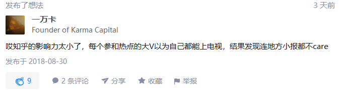 而涉事的大 V 似乎也毫不在乎这点撕逼,认为知乎影响力太小,「连地方小报都不 care」,言语中对于驳斥他的人充满了不屑。