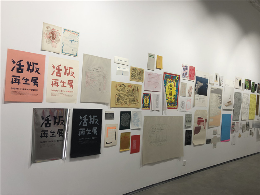 但如果你仔细的观看每个贴在墙面上的作品,你很难再用简单去做形容。深粉色与墨绿的色彩搭配、字体大小间距并不统一的排列、看上去匪夷所思的图案,以及圆圈、方块,五角星的任意叠加……即使在未开馆的早上,展馆也早已被这些花花绿绿的作品装扮的热闹非凡。